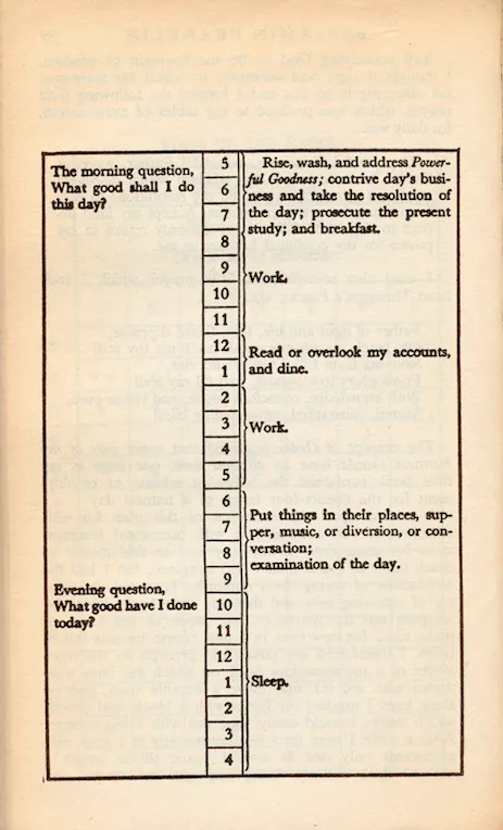 The beauty of Ben Franklin's routine is in its simplicity: there are two core questions and six blocks of time.