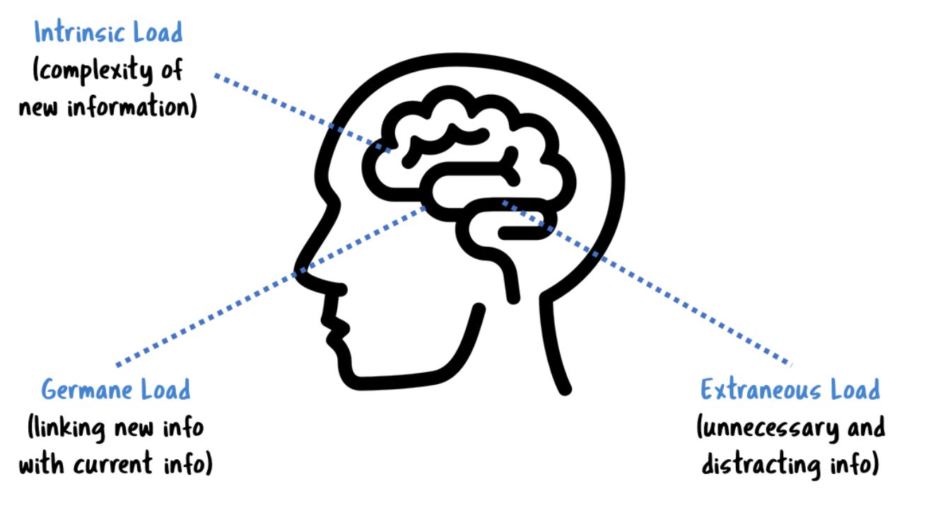 Next up we have something called extraneous cognitive load which is basically information not relevant to what you are learning and this is all about the method in which the information is taught and is really about limiting anything that isn't directly relevant to what you want to learn. So if you keep getting distracted by external information or the method of learning is ineffective this increases extraneous cognitive load and the goal of teachers, whether they know it or not, is to reduce extraneous cognitive load and communicate information in a simple and effective way.