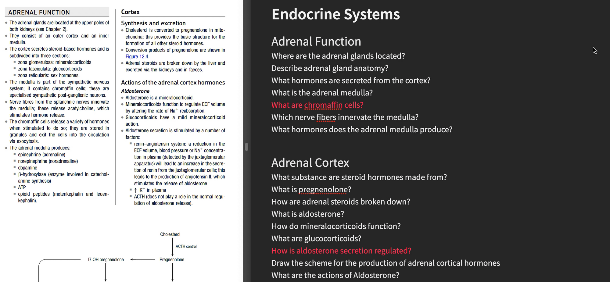 The first thing I do is to organise my note or word document with headings for the topic areas in a logical structure that matches the source material or exam syllabus so I can quickly jump to sections I want to learn. When creating the questions I will have the lecture notes or source material on one side of my screen and then Evernote or Word on the other. I'll then read through the source material thinking how can I turn any facts into a question. I'll also be thinking about anything that is mentioned in the text, video or whatever the source material is that I don't know or I'm not sure about and I'll create a question from this too. So for example if we're creating questions on the physiology of the Adrenal gland like I did in my surgical exams and there is a fact like "the cortex is divided into 3 sections..." then immediately I'm thinking I can add questions like "what is the adrenal cortex?", "how is the adrenal cortex divided?", or even just "what is the structure of the adrenal gland?".
