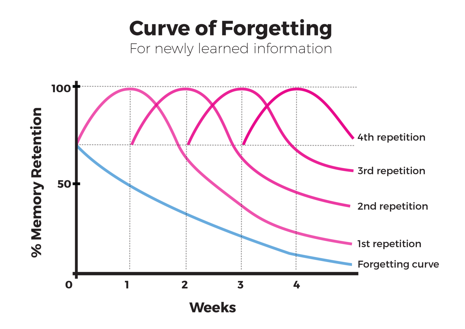 Once you have spent time creating your questions it's then time to test yourself. Just like in my article on How to Study for Exams it's a good idea to plan out your study sessions around topic areas and use spaced repetition intervals to revisit so you don't forget what you've learned due to the forgetting curve.