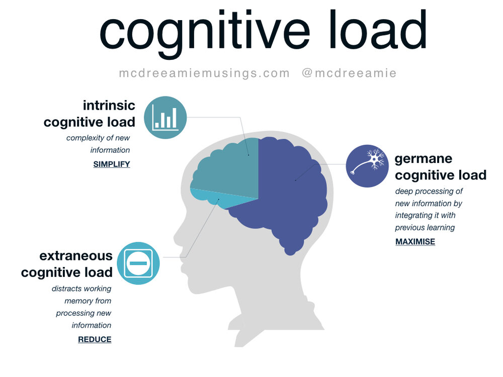 Now to help understand how I reduce my cognitive load when learning in a bit more detail let's look a little more at the science. Cognitive Load Theory was published by John Sweller in the journal Cognitive Science in 1988 and the concept of cognitive load was further broken down into three types of cognitive load: