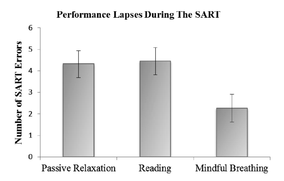 Another effect that has been studied is the tendency to get distracted. A study by Mrazek et al in 2012 observed that 8 minutes of mindful breathing reduced behavioral indicators of mind-wandering when participants were given a very boring task. The authors hypothesised that mindfulness practice helps to reduce outside thoughts creeping in and helps you to become more aware of distractions when they occur so you can quickly identify them and get back to the task at hand.
