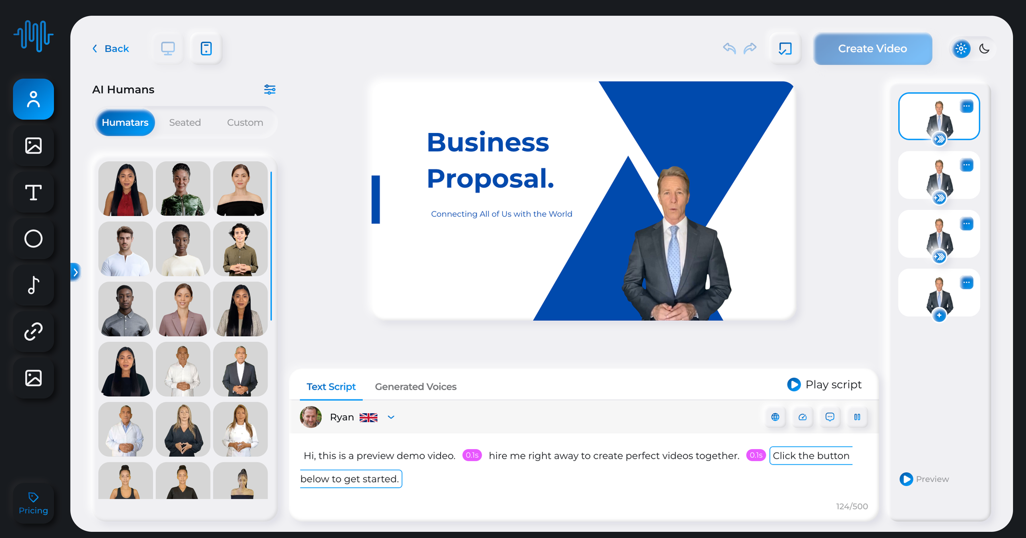 I found DeepBrain's templates a little messy compared to some of the more minimalist backgrounds and slide layouts of tools on this list but that's just my preference. That being said the avatars themselves are way better than the editor and template design and demonstrate a good amount of realism.